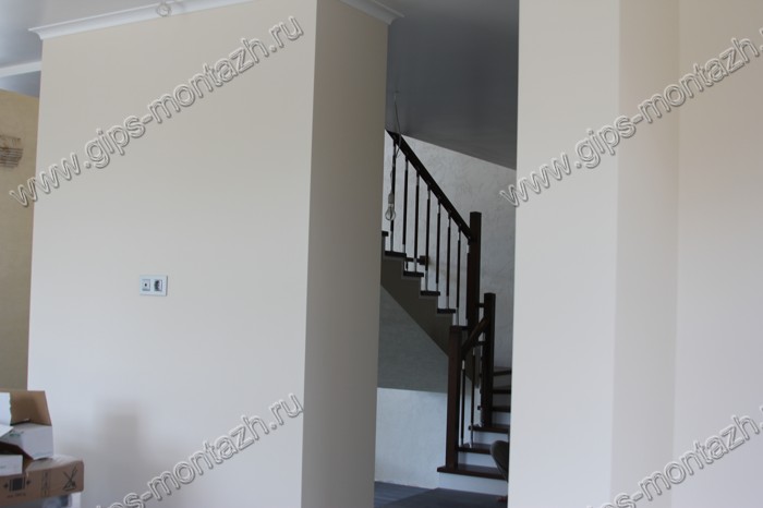 Что сделано: Было принято решение отказаться от традиционной штукатурки стен. Для выравнивания поверхностей использовался металлический усиленный каркас и гипсокартон. Быстрое бюджетное решение. Легко прячется инженерия коттеджа. За счёт идеальных поверхностей, качественно наноситься финишные облицовочные и декоративные материалы…